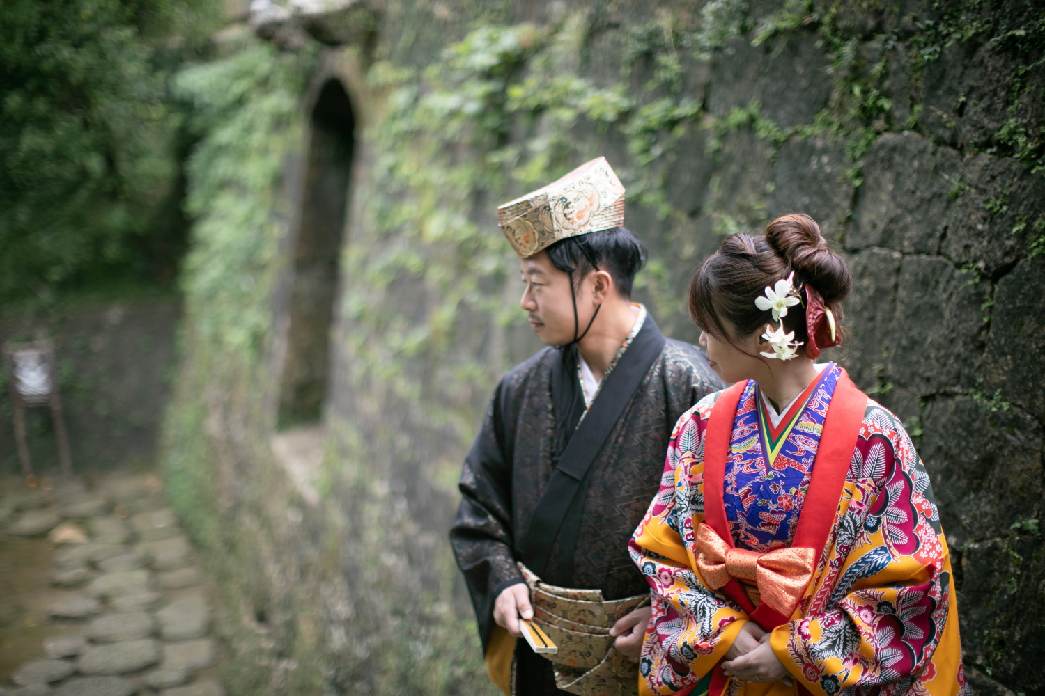 沖縄の伝統衣装で撮影
